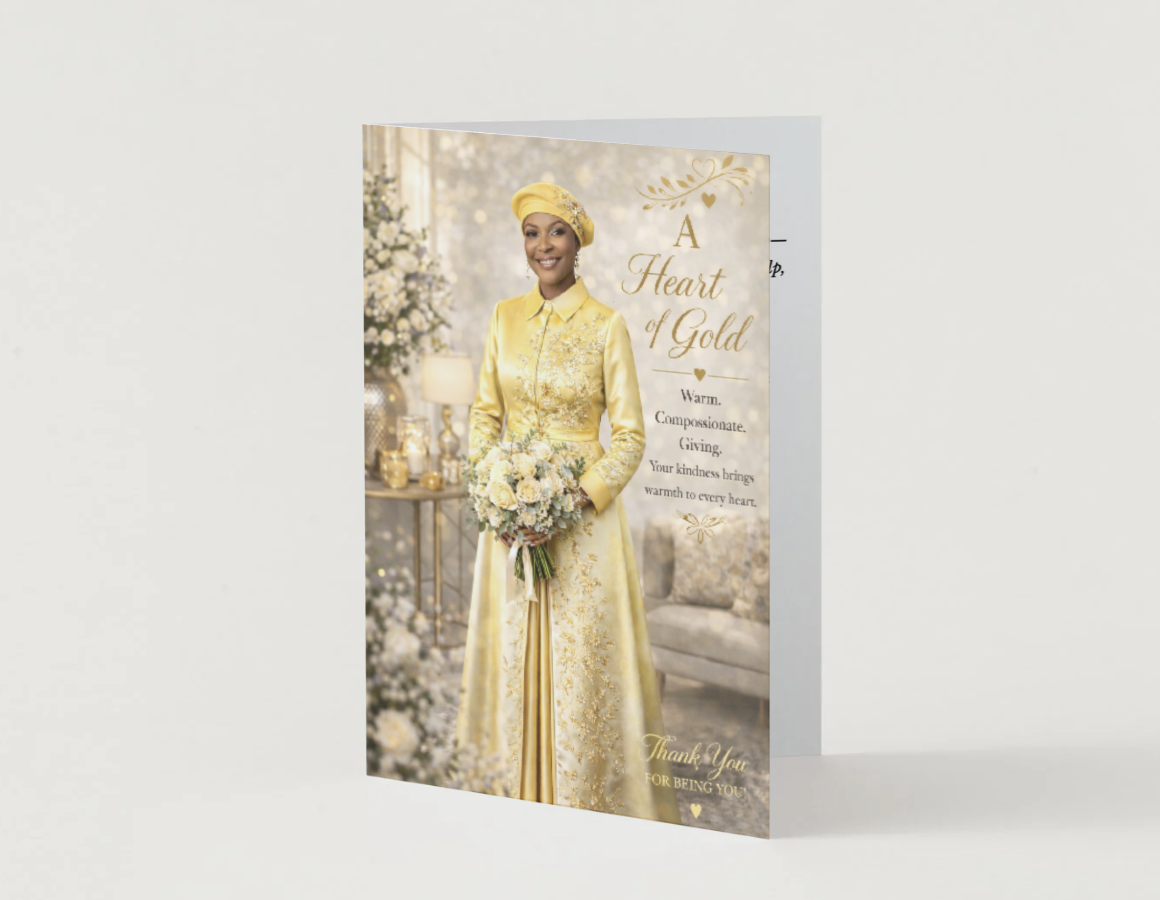 Some people give from the heart so naturally that their kindness becomes unforgettable. A Heart of Gold celebrates the warm, compassionate soul whose generosity, care, and loving spirit bring comfort to everyone around them.